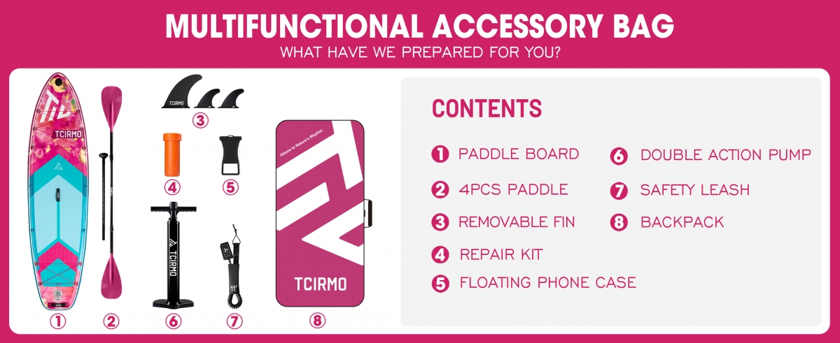 Tcirmo Wave Pink Paddle Board ile suyun üzerinde özgürce süzülmeye hazır olun! Hafif, dayanıklı ve kullanımı kolay yapısıyla, göllerde, nehirlerde ve sakin denizlerde keyifli bir deneyim sunar. Touring, yoga ve başlangıç seviyesindeki kullanıcılar için de ideal bir seçimdir.